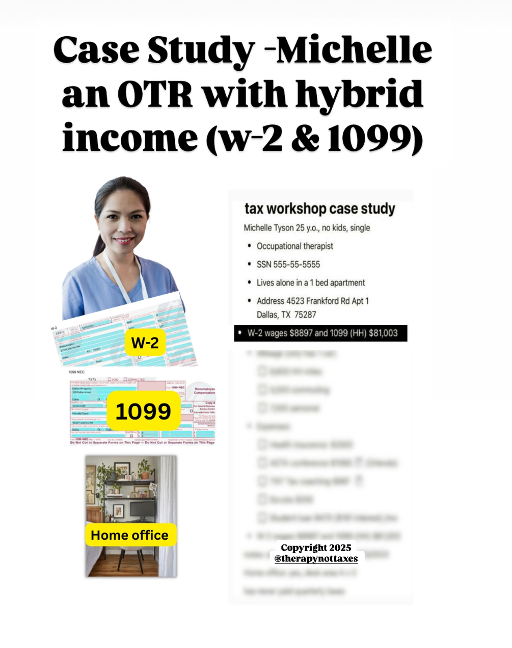 - Therapy professionals who are self employed, earn 1099 income or earn a combo of 1099 + W-2 income
